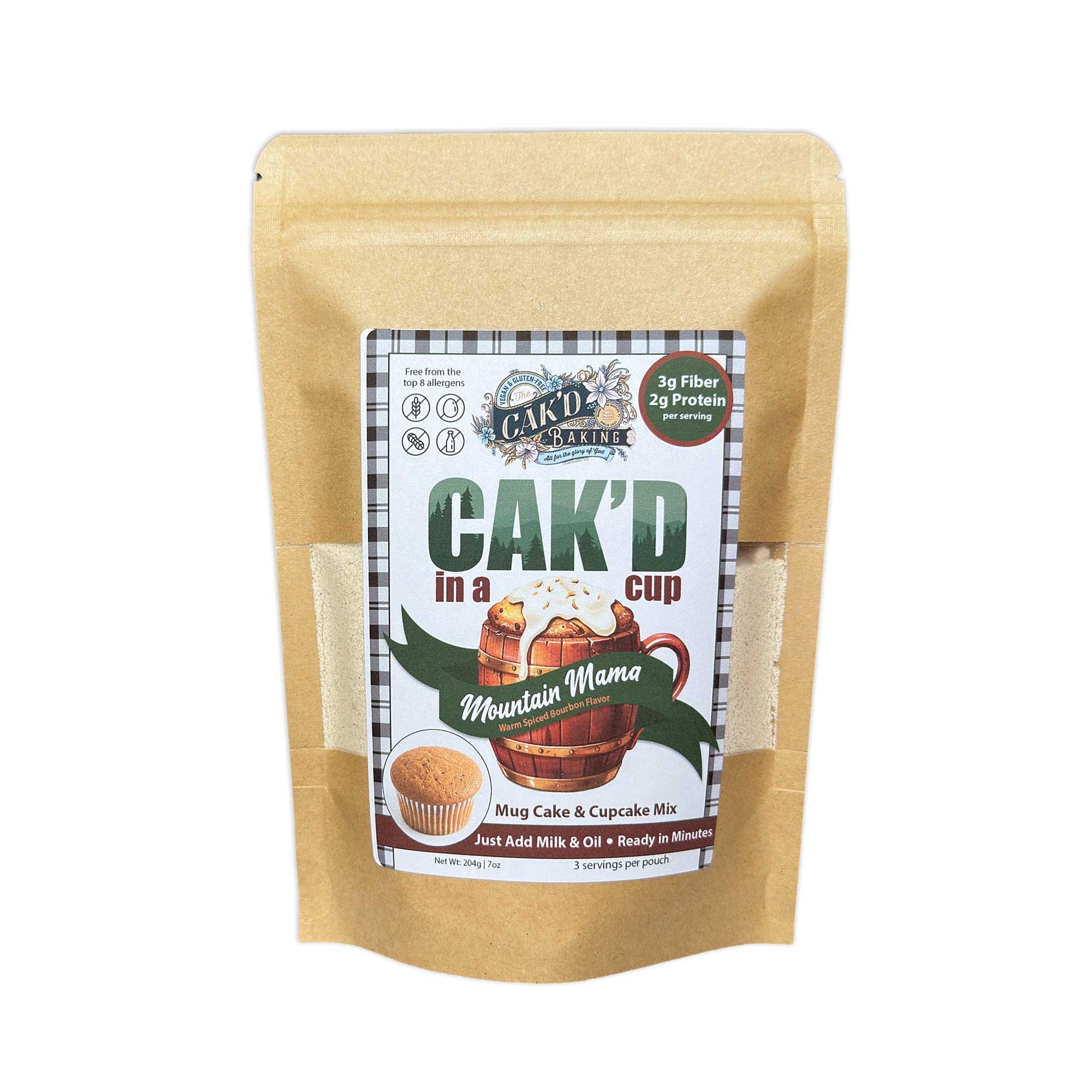 Mountain Mama CAK’D in a Cup™ is a Top 8 allergen-friendly, vegan, and gluten-free spiced cake mix inspired by cozy Appalachian flavors and warm bourbon-style spice notes—rich, comforting, and just a little bit bold.